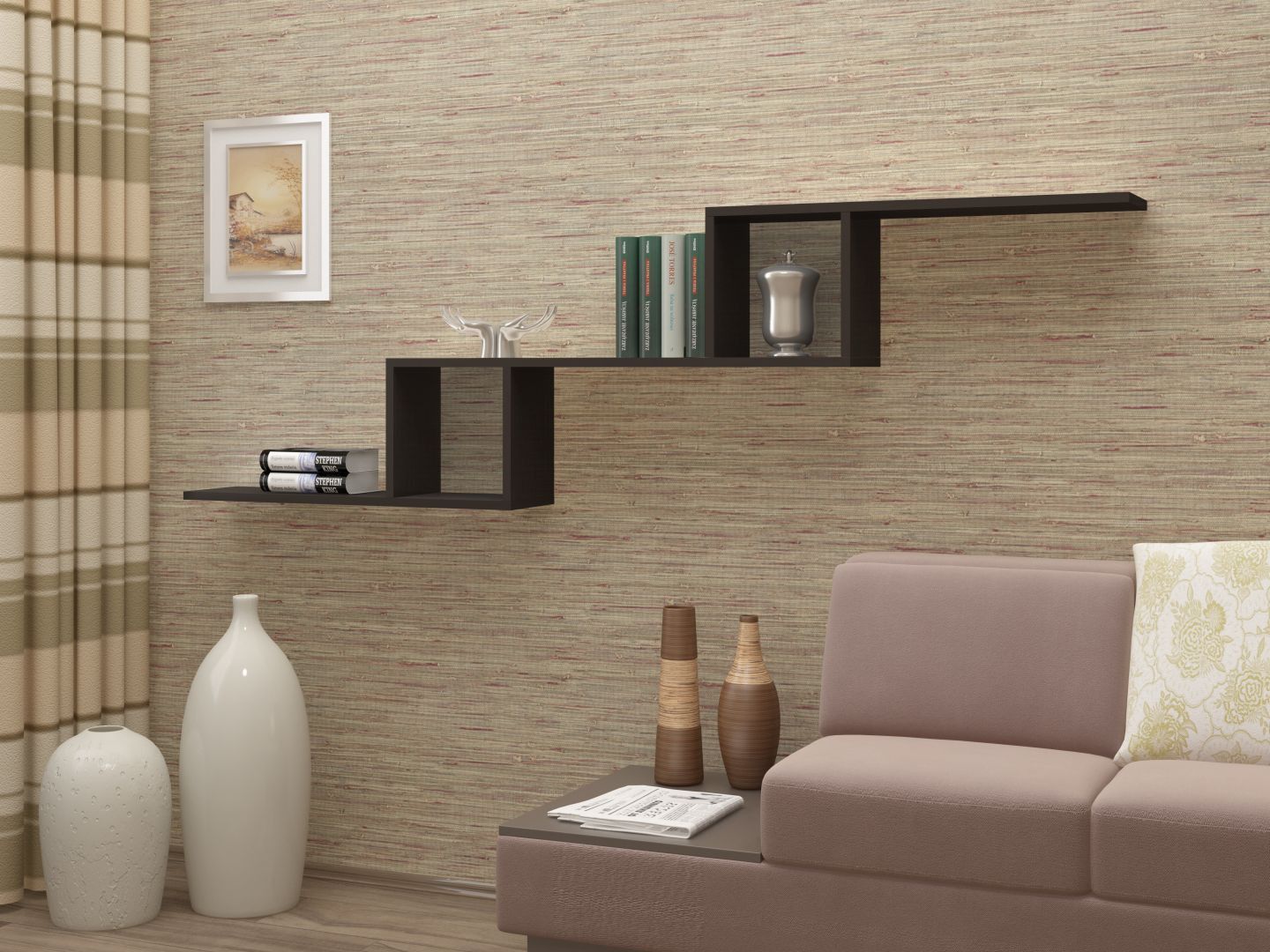 Оригинальная трехуровневая полка – настоящее украшение для гостиной, спальни или детской комнаты, домашнего кабинета. С первого взгляда привлекает оригинальность конструкции. Отсутствие задней панели, открытость полок создают ощущение, что изделие «парит» в воздухе. Такой модуль придаст интерьеру необходимую динамику и оживит даже невзрачное помещение со скучной стандартной мебелью.